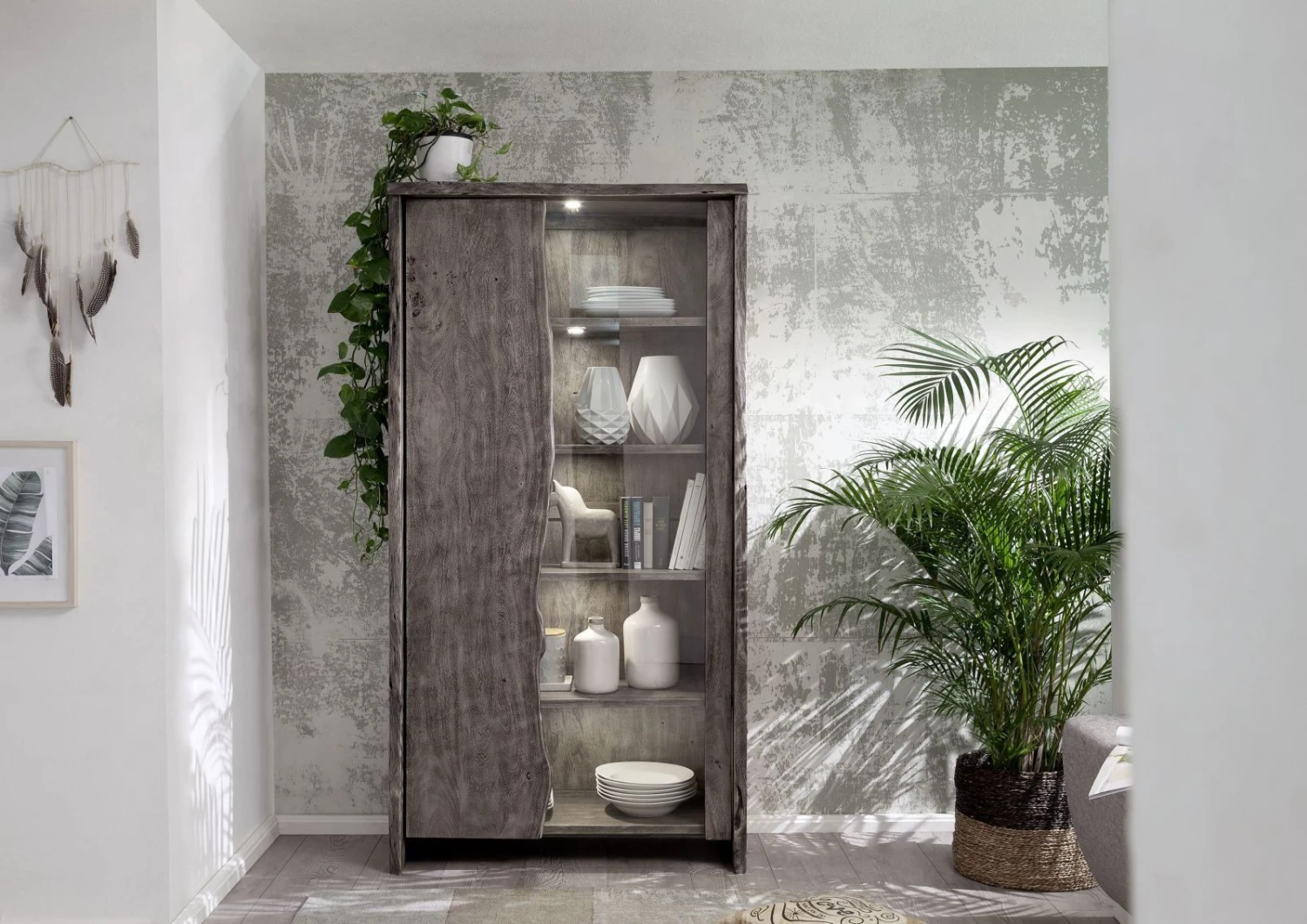 Description du produit Vitrine 105×45 Acacia laqué Gris taupe PURE ACACIA #911
