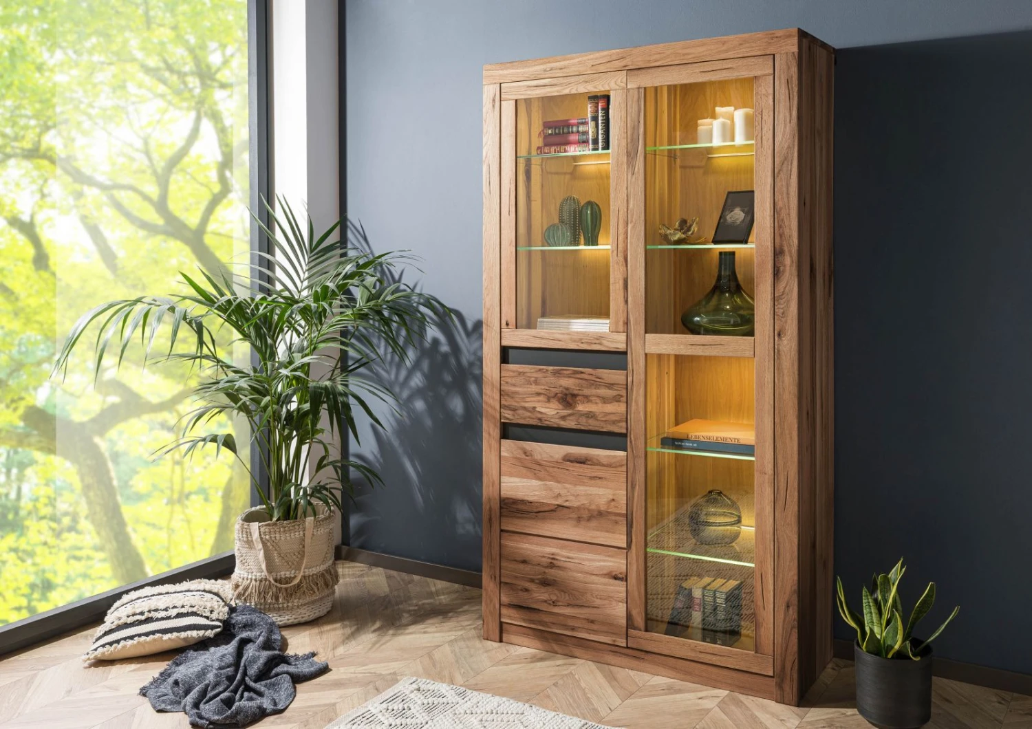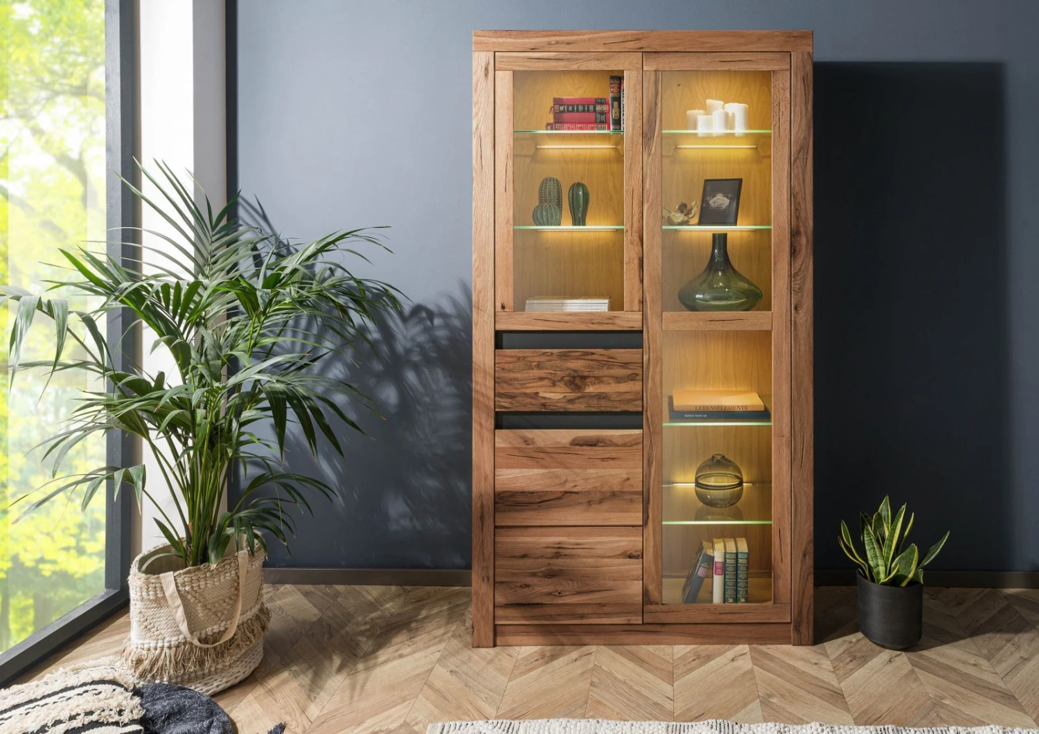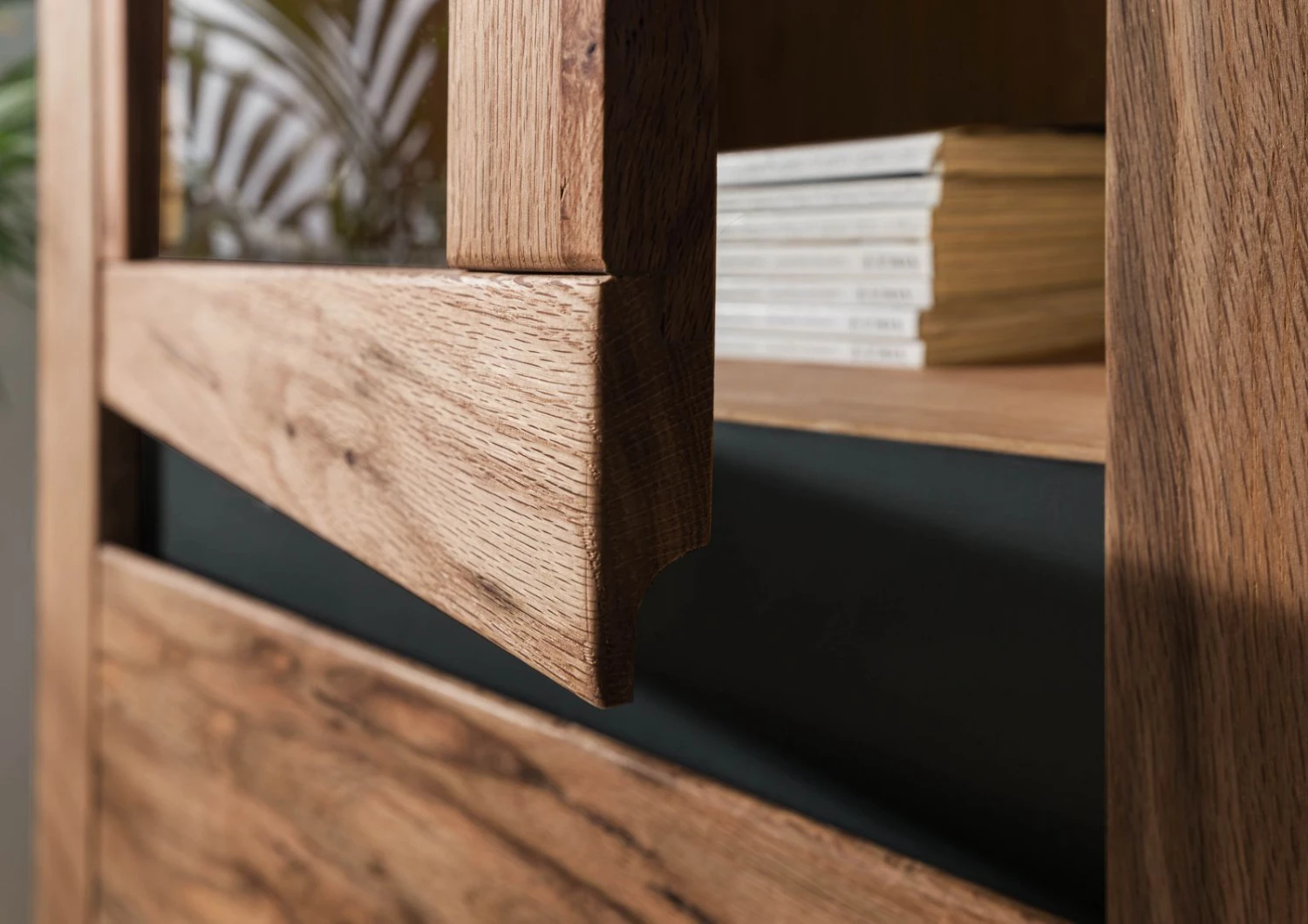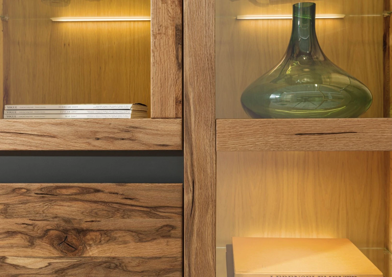 Vitrine moderne en bois de chêne massif huilé (chêne sauvage et chêne lombard)