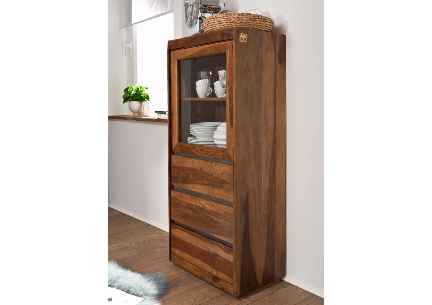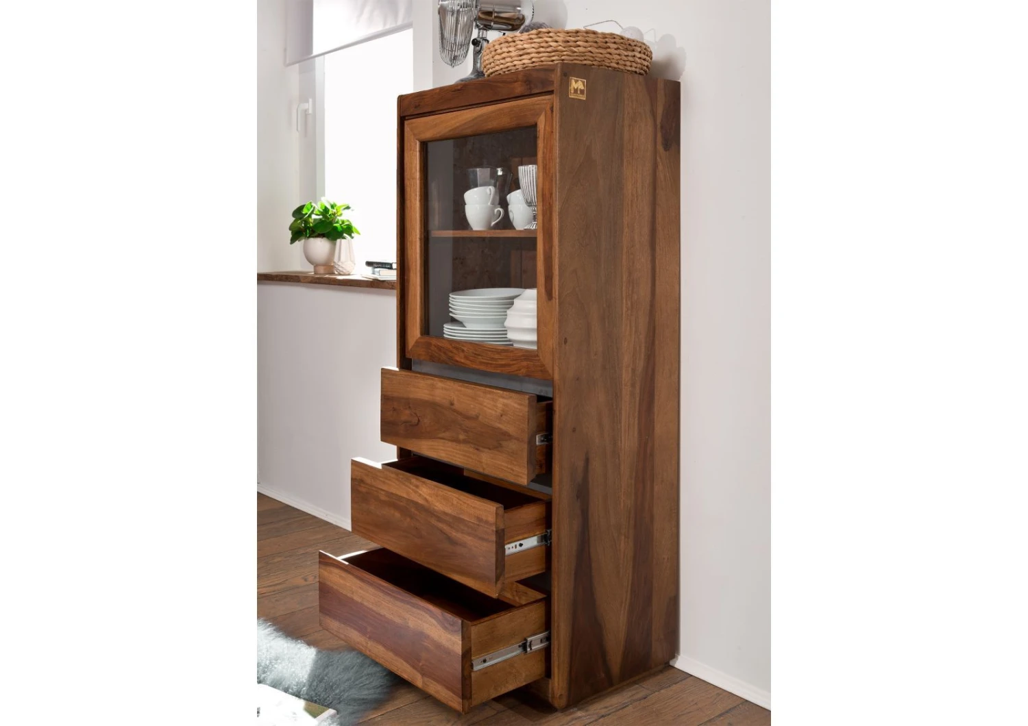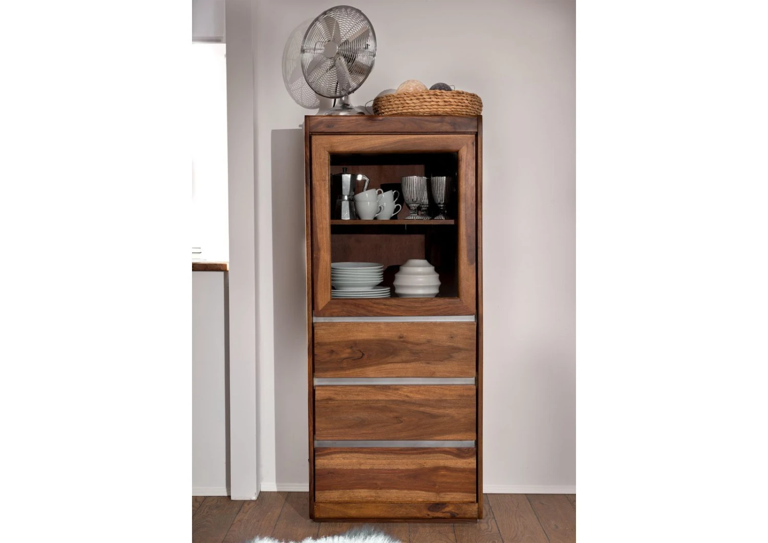 Découvrez toute l´élégance du bois de palissandre (Sheesham) de haute qualité combinée à des éléments métalliques discrètement intégrés aux meubles de cette série SYDNEY et laissez-vous surprendre par leurs surfaces chatoyantes. Ces meubles sont travaillés de telle sorte que l´aspect naturelle du bois, la structure, les nuds et les petites fissures naturelles soient délibérément conservés rendant ainsi chacune de ces pièces absolument uniques. Les particularités de cette collection moderne et sobre apportent élégance et finesse à cette série remarquable. Cette gamme de meuble propose des alternatives pour un salon, une salle à manger, une bibliothèque ou un bureau, et est complétée avec de nombreux meubles d´appoints. Vous pourrez choisir entre deux couleurs différentes : noble unique et smoked oak.