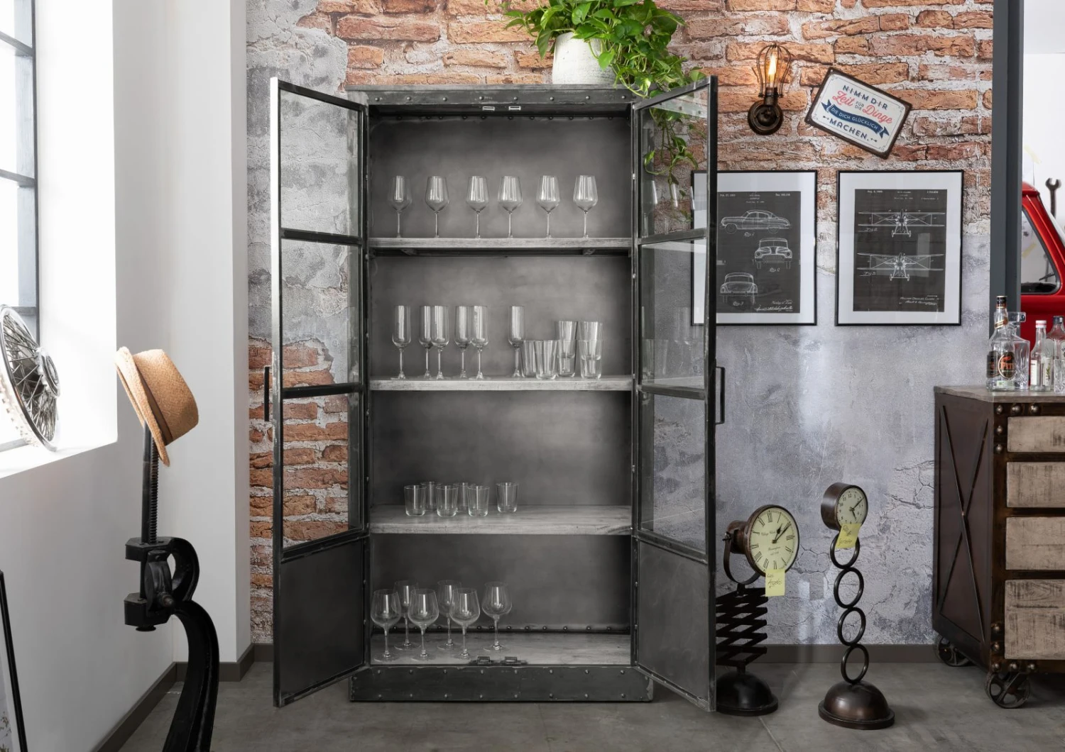 Description du produit Vitrine 92×40 Manguier laqué Gris HEAVY INDUSTRY #143
