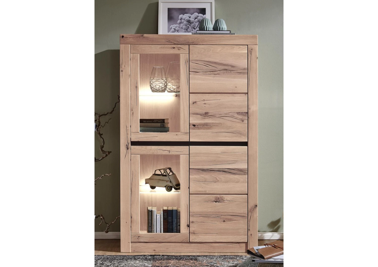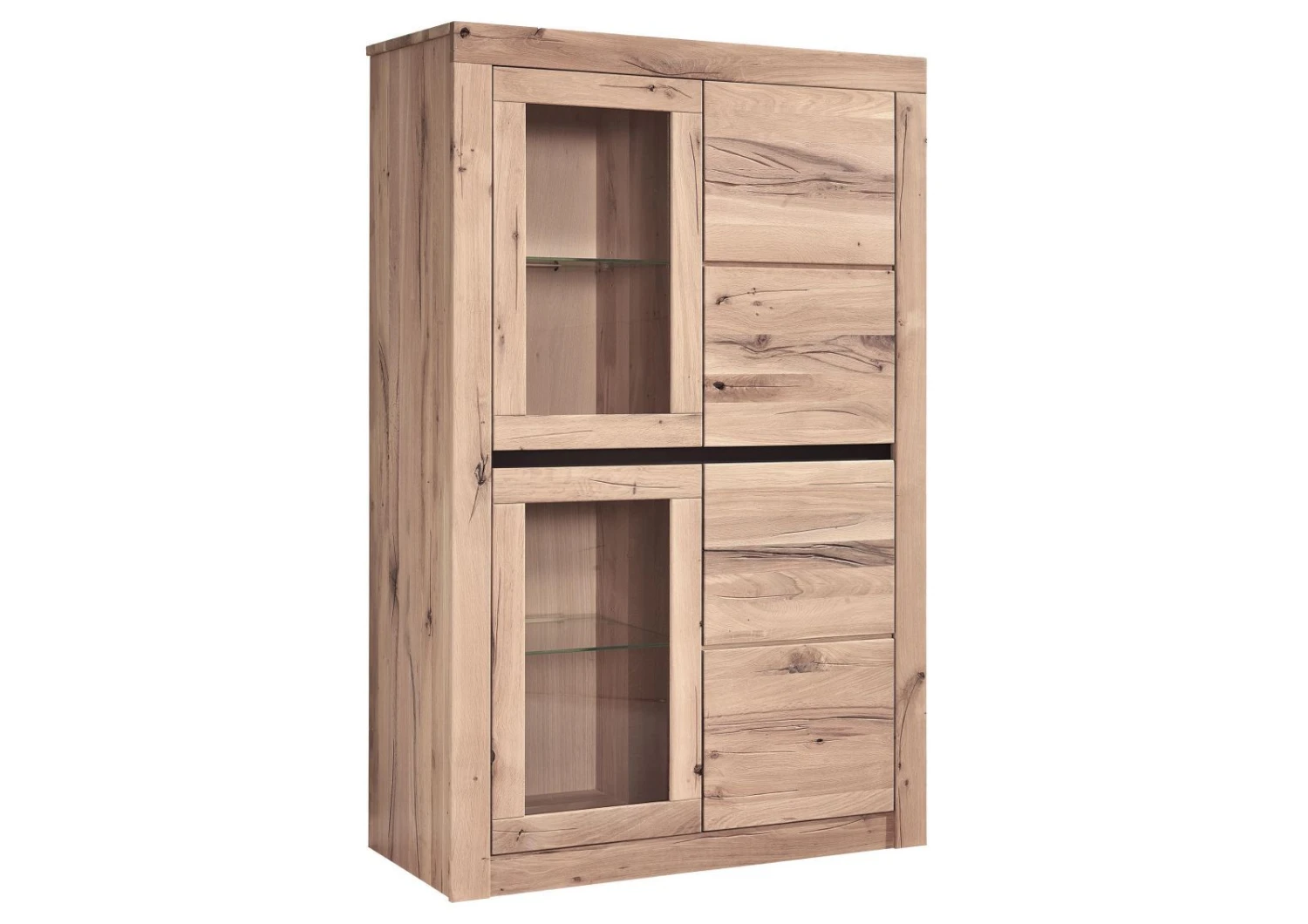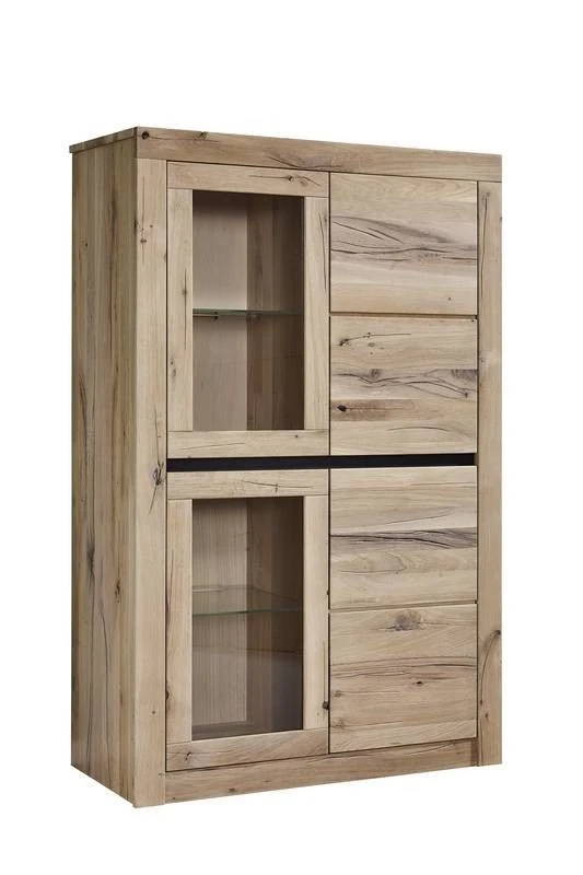 Description du produit Vitrine 95×42 Chênes sauvage et lombard huilé Bianco MONTREUX #202