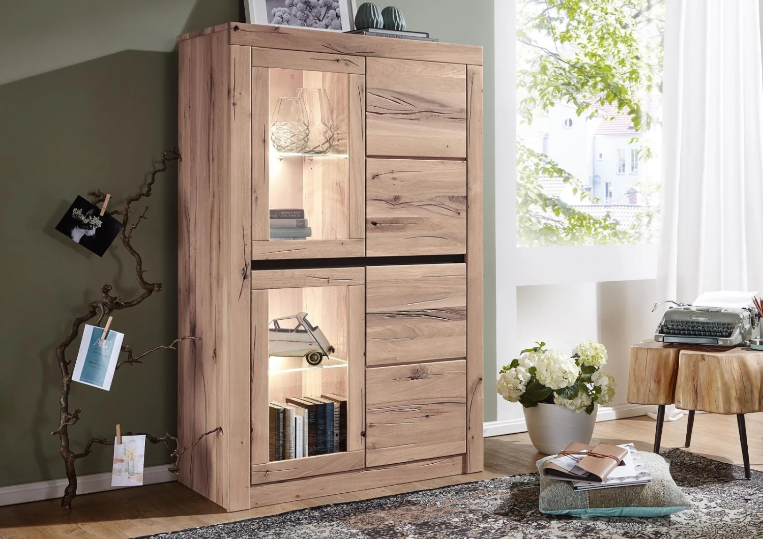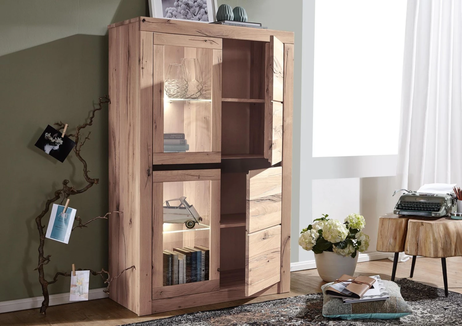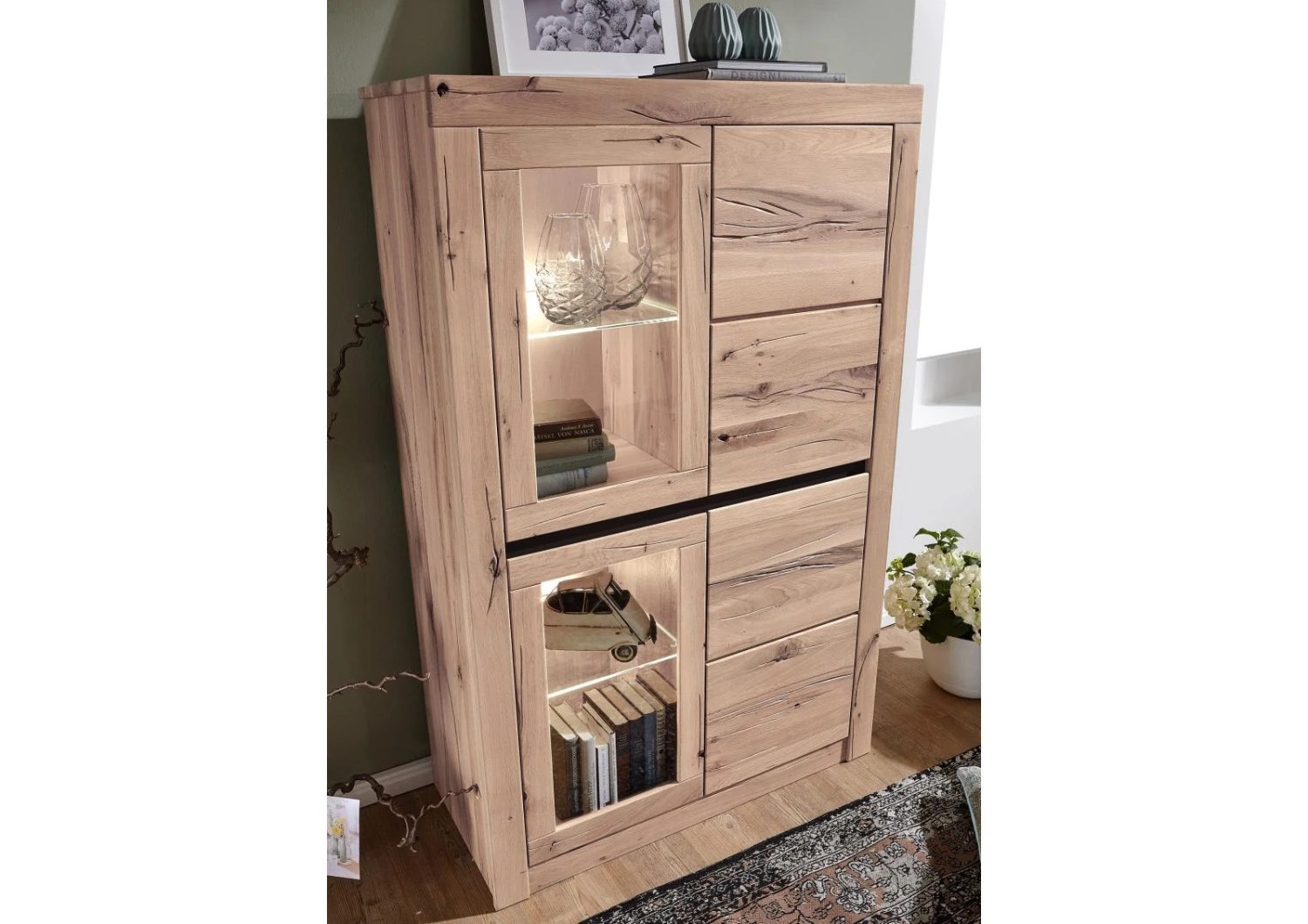 Description du produit Vitrine 95×42 Chênes sauvage et lombard huilé Bianco MONTREUX #202