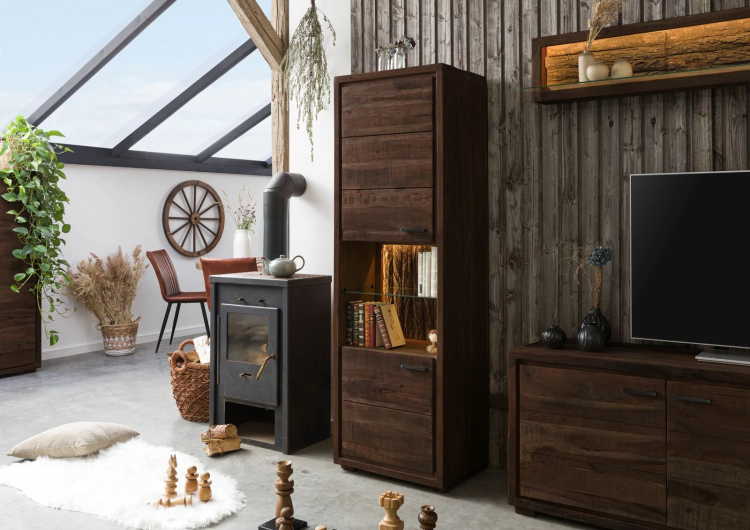 Description du produit Vitrine en bois d’acacia laqué marron BARK #202